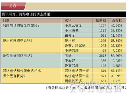 VoIP即網(wǎng)絡(luò)電話,與傳統(tǒng)電話相比,其最大的不同在于語音是通過寬帶互聯(lián)網(wǎng)而非傳統(tǒng)的電話網(wǎng)絡(luò)傳輸。由于所需的交換設(shè)備數(shù)量比傳統(tǒng)電話少,其運營成本大幅降低,從而形成了天然的資費優(yōu)勢。從騰訊對VoIP的調(diào)查來看,雖然有很多人認為VoIP “不怎么安全”,但是提到“使用過VoIP嗎?”、“是否看好VoIP”、“VoIP與傳統(tǒng)電話相比哪個更有優(yōu)勢?”時,被調(diào)查人的答案是肯定的。雖然大家都覺得VOIP技術(shù)還存在不完善的地方,但是它帶給人們的優(yōu)惠是十分實在,因此大家對它的發(fā)展前景非?春谩6渲凶畲蟮闹С终吣^于中國90%以上的中小企業(yè)。