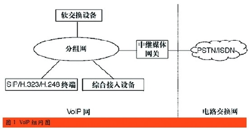 圖1所描述的是一個(gè)VoIP通用的組網(wǎng)圖,按照VoIP產(chǎn)品在網(wǎng)絡(luò)中的位置和作用不同,通常將VoIP產(chǎn)品分為三類:
