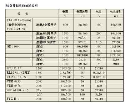 K.20/K.21(國(guó)際電信聯(lián)盟)和中國(guó)的YD/T993、950標(biāo)準(zhǔn)。不同的標(biāo)準(zhǔn)要求保護(hù)器件、技術(shù)和拓?fù)渚哂胁煌姆(wěn)定性狀態(tài)。通過(guò)比較我們發(fā)現(xiàn),符合美國(guó)標(biāo)準(zhǔn)的保護(hù)器的抵御能力要比符合國(guó)際電信聯(lián)盟標(biāo)準(zhǔn)的高,更比符合中國(guó)標(biāo)準(zhǔn)的為高。在大部分情況下,符合美國(guó)標(biāo)準(zhǔn)的保護(hù)解決方案基本上都能通過(guò)ITU-T