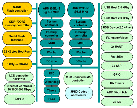 Dual ARM926EJ-S core up to 333 MHz: