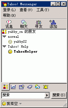 登錄后,可以看到雅虎通的界面非常簡(jiǎn)潔,讓人上手較快。這時(shí),你就可以開(kāi)始尋找或者添加好友。好友添加完畢先不要急著通話,你還需要對(duì)你的音頻、視頻設(shè)備進(jìn)行調(diào)試和檢查。