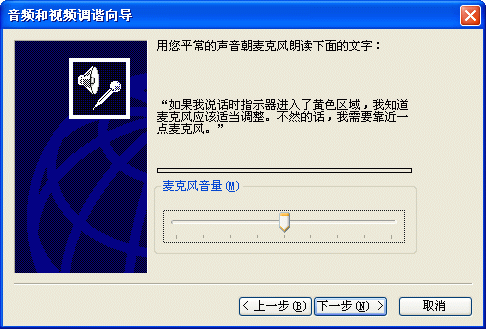 同樣,首先你應(yīng)該在MSN Messenger中調(diào)節(jié)你的音頻和視頻設(shè)備。選擇工具->音頻調(diào)節(jié)向?qū)?圖8)就會(huì)彈出“音頻和視頻調(diào)諧向?qū)А钡拇翱?圖9),請(qǐng)根據(jù)這個(gè)向?qū)У奶崾,一步一步進(jìn)行測(cè)試和調(diào)節(jié)。