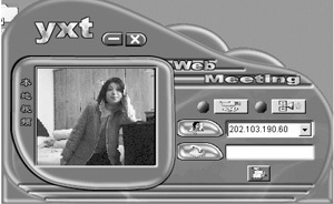 視頻目錄服務(wù)器的IP地址已在主界面中顯示,如“202.103.190.60”。你只需點(diǎn)擊前面有兩個(gè)人頭像的“連接目錄服務(wù)器”按鈕,就可以登錄視頻目錄服務(wù)器。這時(shí)你可看到所有登錄者的信息。如果你想同哪位朋友聊天,你可用鼠標(biāo)雙擊你想與之聊天的朋友的信息,WebMeeting會馬上為你進(jìn)行聯(lián)系,接通后響起一陣電話鈴聲并會彈出一個(gè)名為“遠(yuǎn)程視頻”的窗口,對方的視頻畫面會顯示在其中。用它來跟千里之外的朋友進(jìn)行溝通真是方便,筆者就嘗試用它來進(jìn)行QQ朋友“相面”;舉行遠(yuǎn)程朋友聚會;親身示范教別人學(xué)習(xí)電腦使用及解決電腦故障;了解異地商品優(yōu)劣;欣賞異地風(fēng)光(將攝像頭對準(zhǔn)大街);甚至還可來個(gè)重要事件現(xiàn)場直播等等。