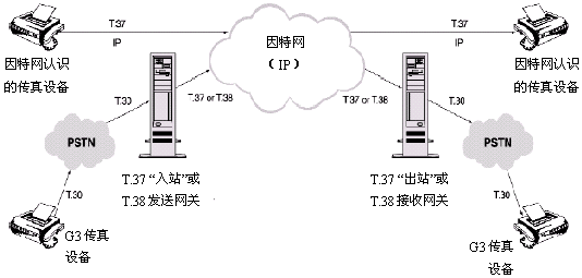 在T.37術語中,因特網傳真(Ifax)設備能夠通過一個出站設備向傳統(tǒng)連接到PSTN的傳真機發(fā)傳真,或者通過一個IP網直接發(fā)送到另一個因特網傳真(Ifax)設備。