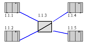 下圖圖示了STP和SSP的連接結(jié)構(gòu),其中1.1.3為STP,其它為SSP。