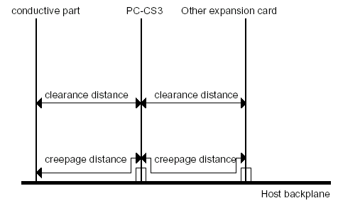主機(jī)或其他適配卡使用的或者產(chǎn)生的電壓 短路(mm) 漏電(mm)