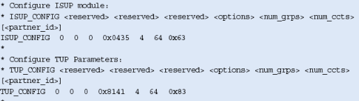對(duì)于ISUP,其他ISUP協(xié)議(其他系統(tǒng)中)的module_id通過(guò)設(shè)置ISUP_CONFIG命令中的<partner_id>參數(shù)來(lái)指定。應(yīng)該設(shè)置ISUP_CONFIG的選項(xiàng)比特ISPF_DUAL