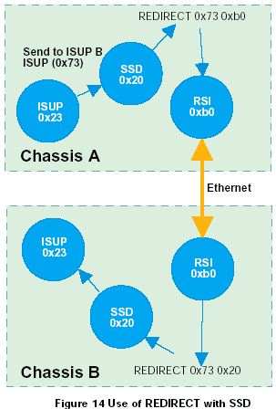 運(yùn)行在信令卡上的協(xié)議模塊,接收端(對(duì)方)的REDIRECT語(yǔ)句應(yīng)該通過(guò)ssd或ssd的驅(qū)動(dòng)(通常情況下使用module_id為0x20)來(lái)對(duì)消息進(jìn)行重定向,如圖14所示。